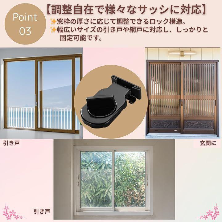 幅広いサイズの引き戸や網戸に対応し、しっかりと固定可能です。