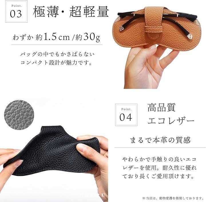 重さはわずか30g。できるだけ大きなメガネケースを持ち運びたくない、シンプルながらも個性もある物が欲しいといった方にもおススメです。