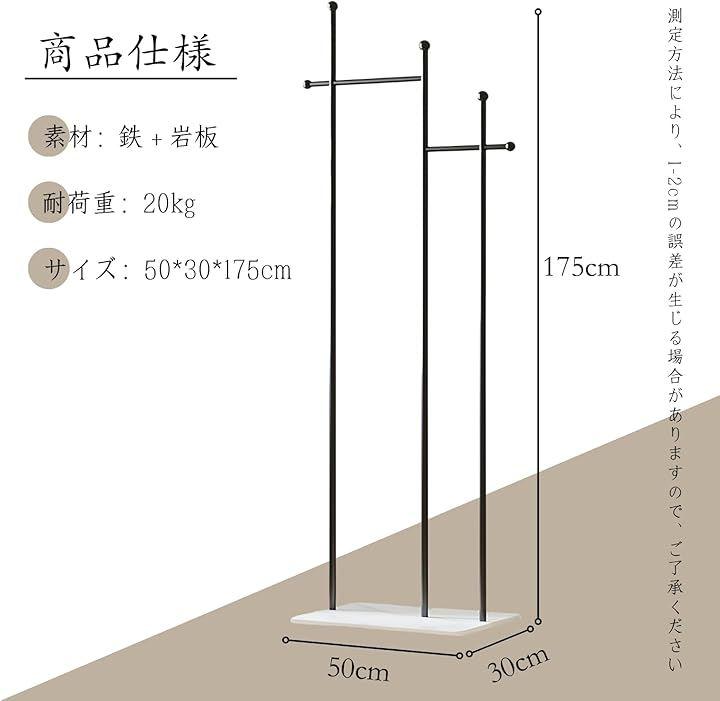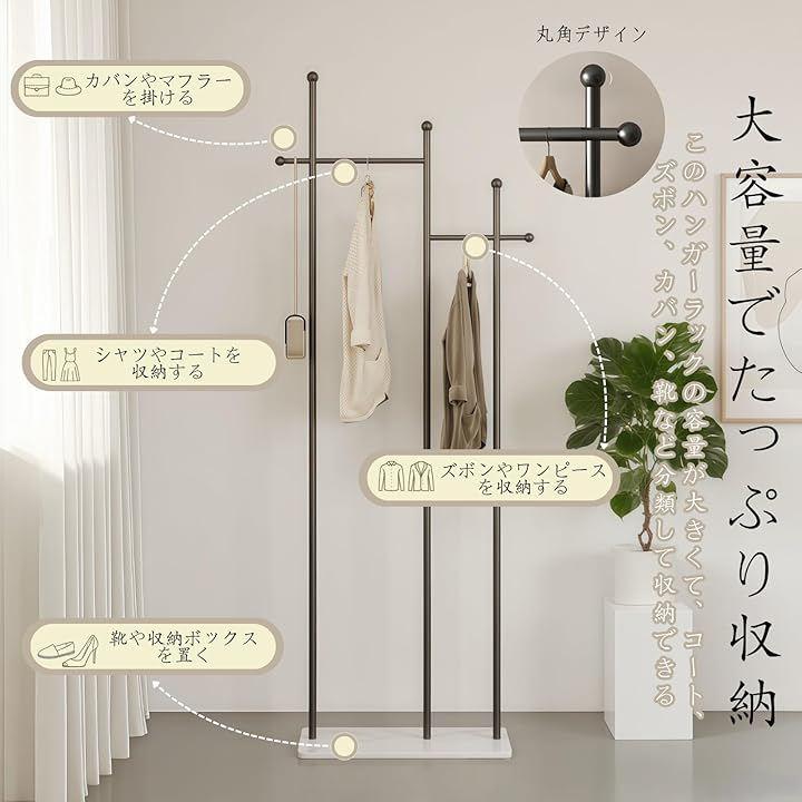 最大20kgの荷重に耐える頑丈設計で、衣類や小物を安心して掛けられます。