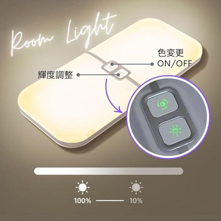 「明るさ調整」本体中央の2つのスイッチで、明るさと発光色を個別に調整可能。