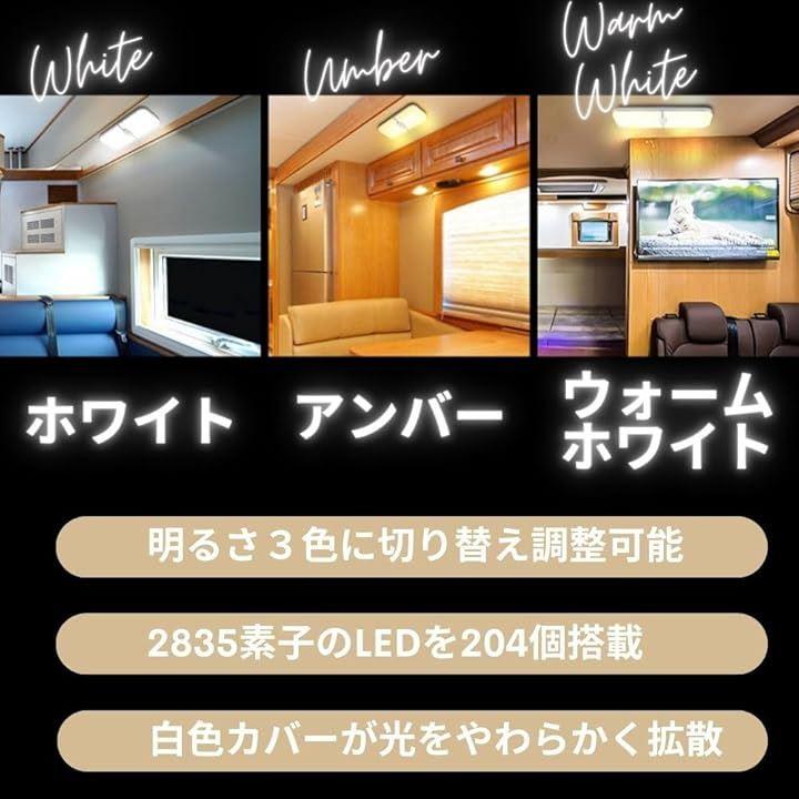 「高輝度LED」2835素子のLEDを204個搭載し、ホワイト・ウォームホワイト・アンバーの3色に切替可能。