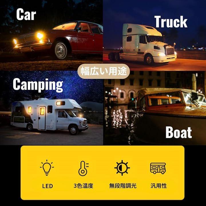 狭いスペースにもすっきり収まり、車内・ラゲッジルームの増設照明としてはもちろん、キャンピングカーやトラック、船舶など幅広い用途に対応します。