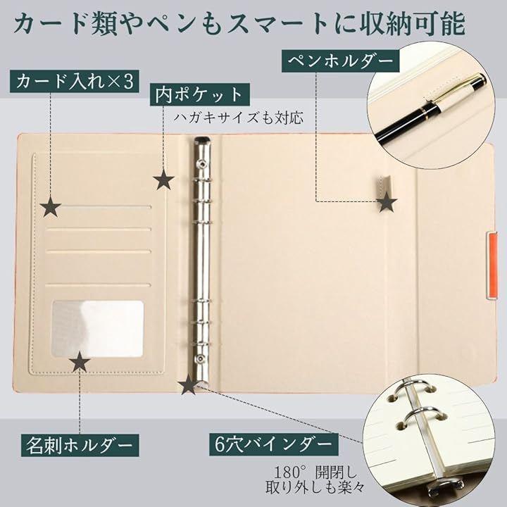 A5サイズ、薄型でスリムながら、100枚のリフィル、便利なカードホルダー、ペンホルダーを備えた多機能システム手帳。