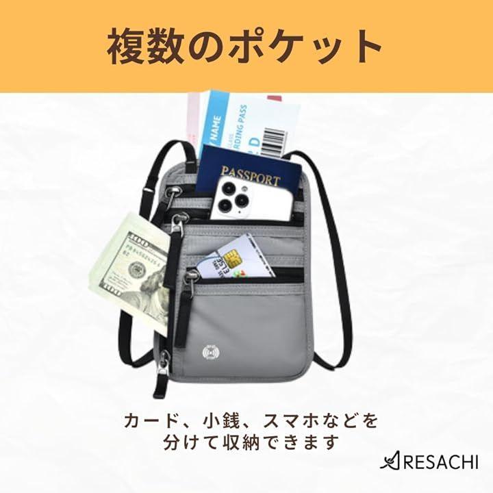 「たくさん入る多機能ポケット」複数のポケットがあり、パスポートやカード、小銭、スマホなどを分けて収納できます。