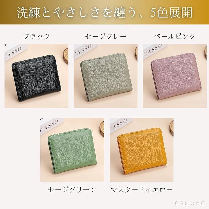 「カラー」ブラック/セージグレー/セージグリーン/ペールピンク/マスタードイエロー「サイズ」約10.3x8.7x1.2cm 「素材」本革(外側)・PU(内側)「機能」札入れ/カードポケットx6/小銭入れ(ファスナー式)「用途」ギフト・プレゼント・誕生日・就職・進学・父の日・母の日