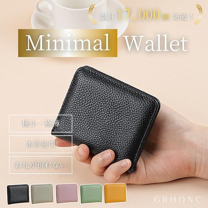 「累計1.7万個出荷。わずか12mmの薄型設計でお札が折れない本革ミニ財布」手のひらサイズながらカード6枚・お札・小銭をスマートに収納。