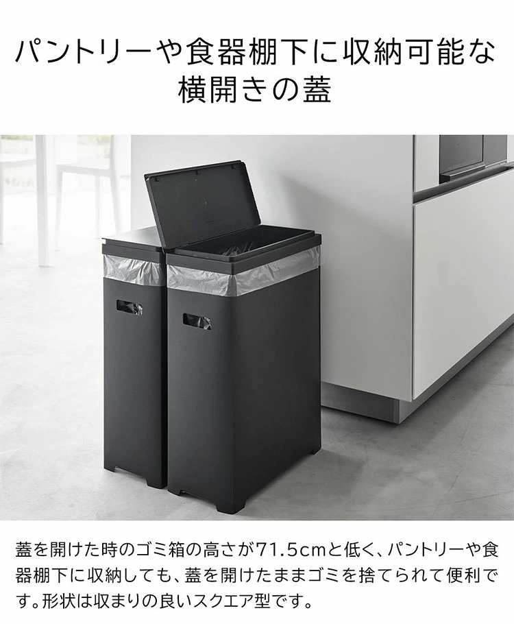 スリム蓋付きゴミ箱 横開きタイプ 2個組 山崎実業 タワー ゴミ箱 45リットル 対応 スリム おしゃれ ふた付き キッチン ダストボックス 2個 2点 セット 棚下 カウンター下 蓋付き フタ付き 大容量 分別 ごみ箱 ホワイト ブラック シンプル モノトーン 1526 1527 tower 公式 ゴミ袋 45L 35L 20L 袋掛け 45Lゴミ袋用 スタイリッシュトラッシュカン 2つ ごみ入れ スマート 横開き 台所 用品 キッチングッズ 雑貨 白 黒 新生活 yamazaki タワーシリーズ 山実 やまじつ ヤマジツ やまざきじつぎょう たわー towerシリーズ ブランド インテリアブランド