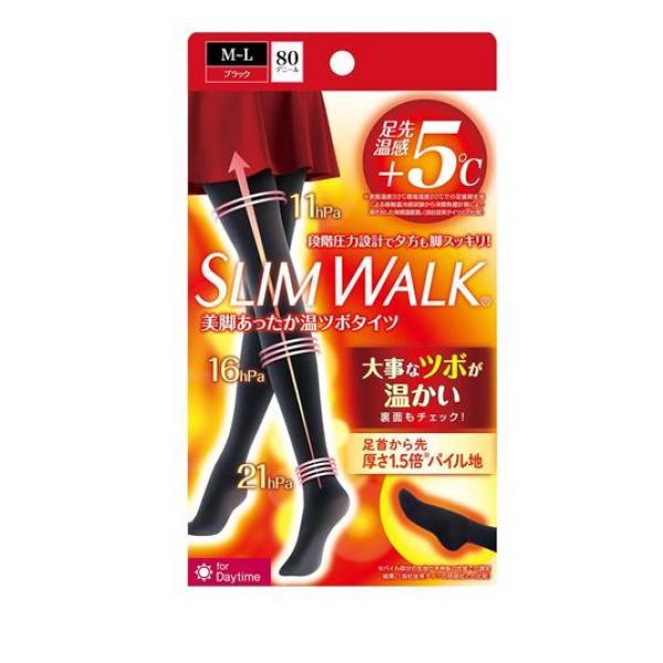 製品の特徴●SLIM WALK 美脚あったか温ツボタイツ ブラック 80デニール●スリムウォークは、はくだけで美脚や足をスッキリしてくれる着圧レッグウェアです。風合いや素材にまでこだわった日本基準の高品質・高機能で、最高のはきごこちと機能を追求。●医学から生まれた段階圧力設計(足首21hPa、ふくらはぎ16hPa、太もも11hPa)●足首からつま先まで厚さ1.5倍(*)のパイル地で、女性にとって大事なツボがぽかぽか。[*パイル部分の生地が未伸長の状態での測定結果(ピップ従来タイツの同部位との比較)]●お腹まわりゆったり設計。●吸湿発熱機能で、脚全体あったか。●for Day Time。1日中座りっぱなしのデスクワーク、長時間の立ち仕事、たくさん歩くお出かけ・旅行など、日中のがんばる脚に。◆S~Mサイズ(ヒップサイズ80~93cm、身長145~160cm)◆M~Lサイズ(ヒップサイズ85~98cm、身長150~165cm)※S~MとM~Lの両方に該当する場合は、身長が中央値に近い方のサイズをお選びください。