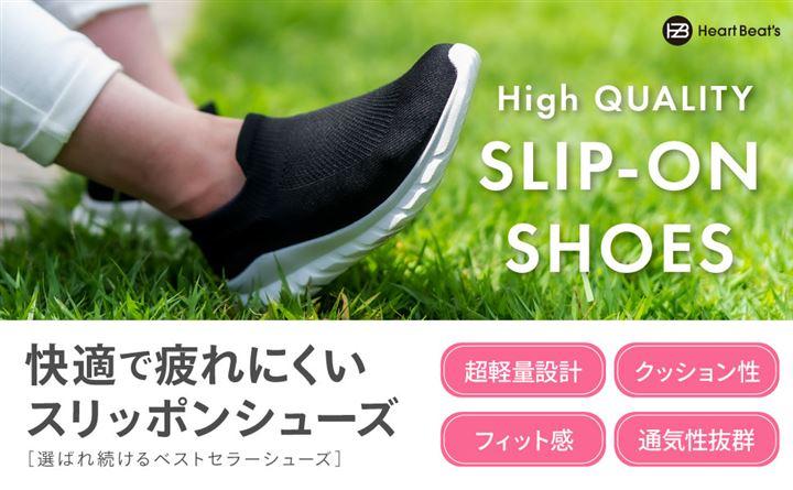 ・紐なしスリッポンタイプの履き口は靴下感覚で脱ぎ履きしやすいシューズです。