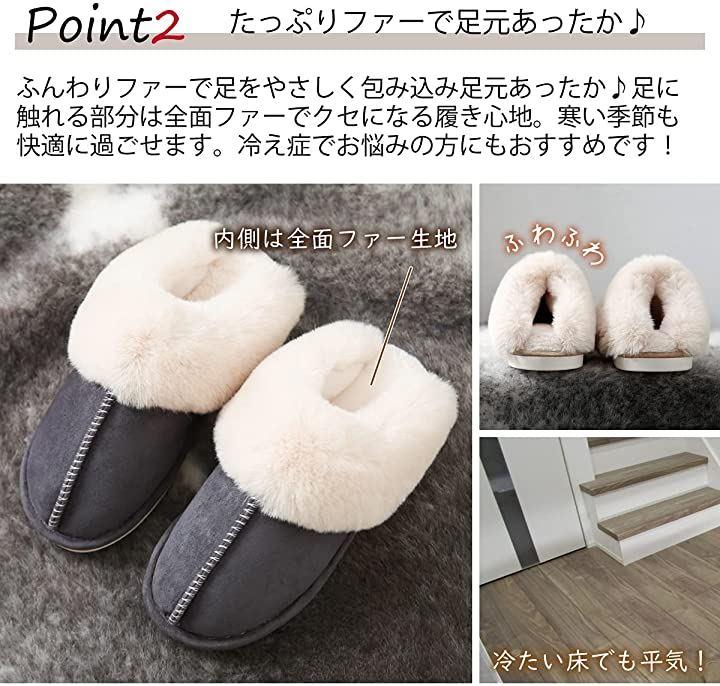 心地よいファーの肌触り・ふんわりあったかファー付スリッパ
