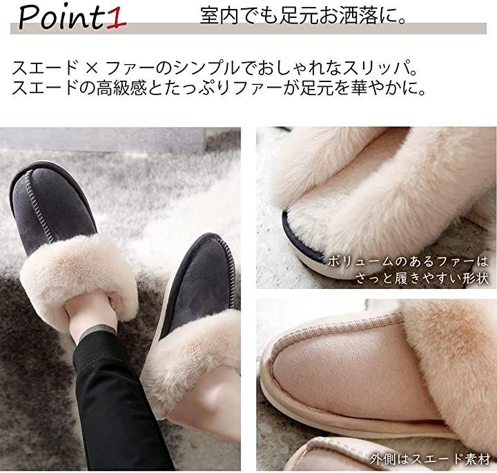 ・スエードxファーのシンプルでおしゃれなスリッパ。
