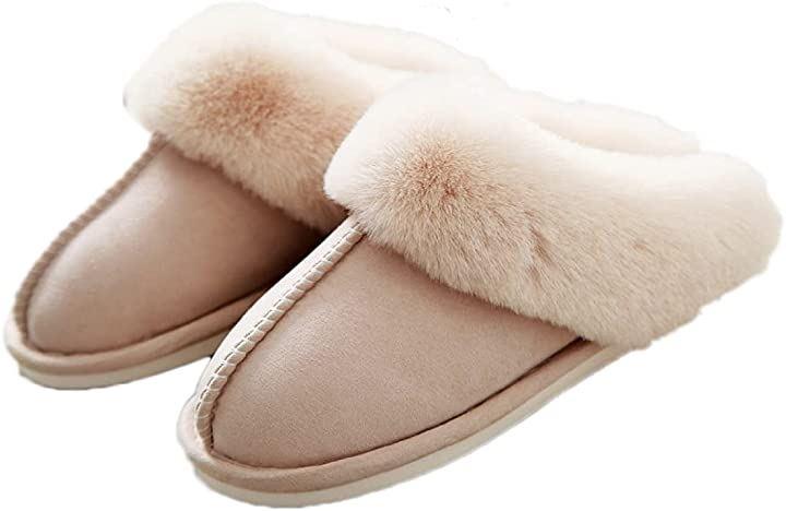 暖かいファー付きムートンスリッパ。