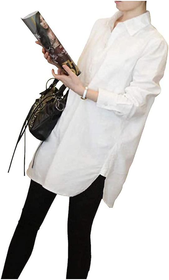 ・ゆったりとしたミディアム丈のシンプルなシャツです。