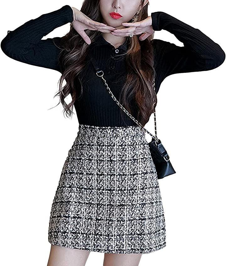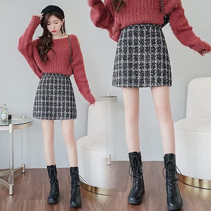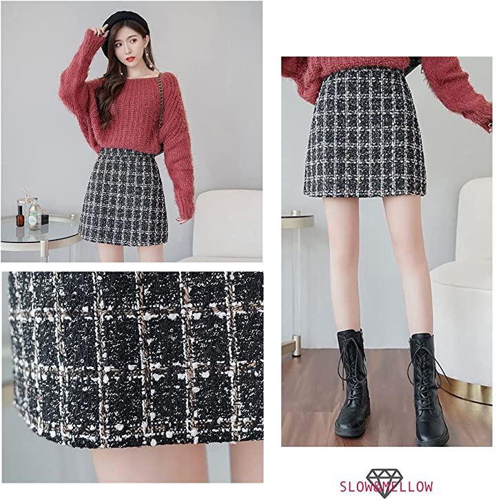 大人かわいいチェック柄のツイード風スカートです。Aラインのミニ丈デザインなので足を長く見せ綺麗なスタイルに*