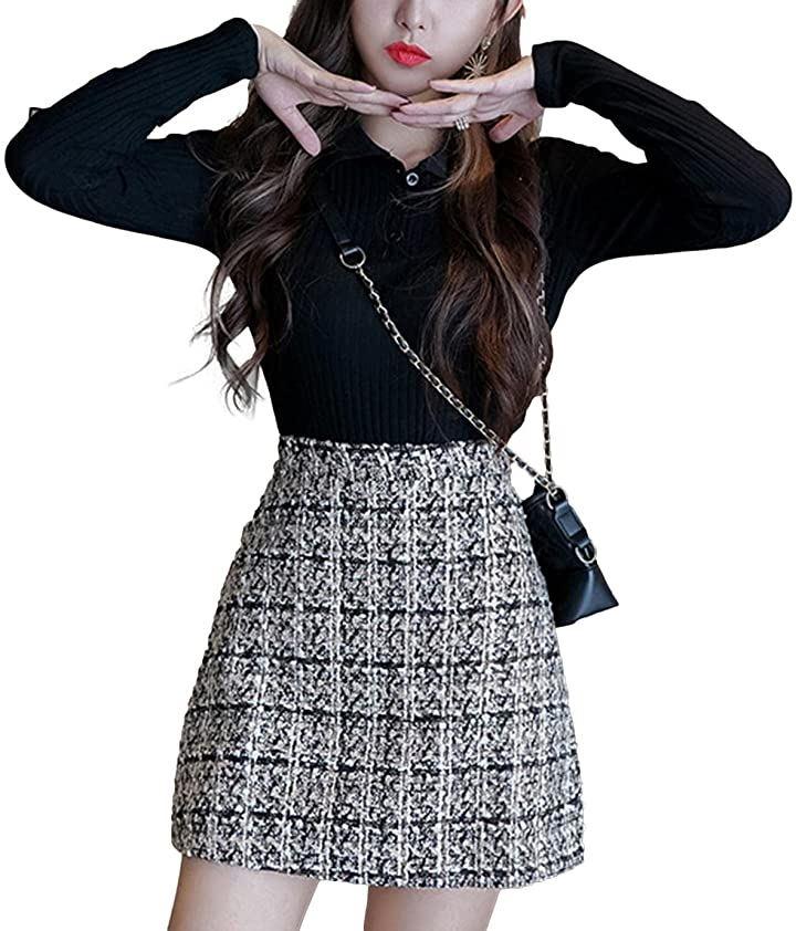 ・大人かわいいチェック柄のツイード風スカートです。Aラインのミニ丈デザインなので足を長く見せ綺麗なスタイルに*
