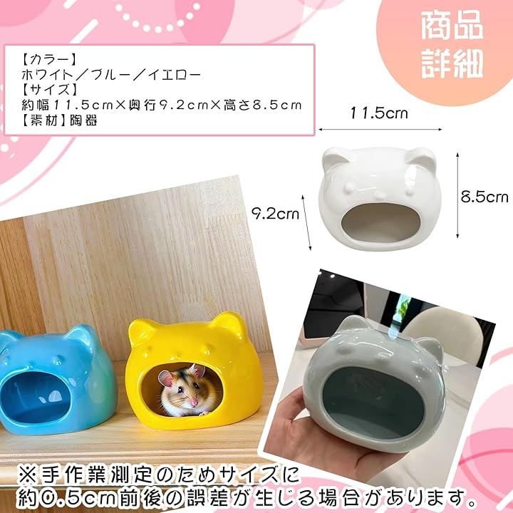 「商品内容」小動物用 陶器製 シェルター x1「サイズ」約11.5x9.2x8.5cm「素材」陶器 *手作業測定のためサイズに約0.5cm前後の誤差が生じる場合があります。