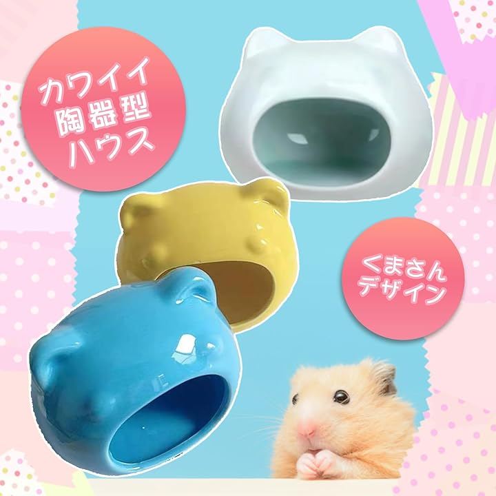 「可愛いクマ型の陶器ハウス」 小動物用の陶器製シェルターとして使えるクマ型デザインのハムスターハウスです。