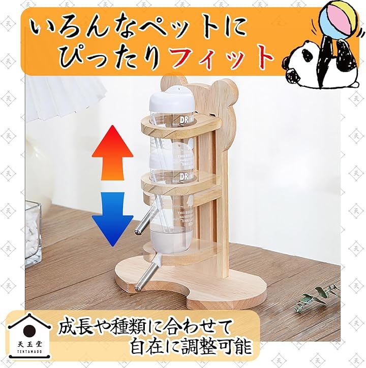 「高さ調節可能」成長に合わせて給水ボトルの高さが調整できるため、さまざまな小動物に対応可能です。