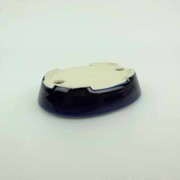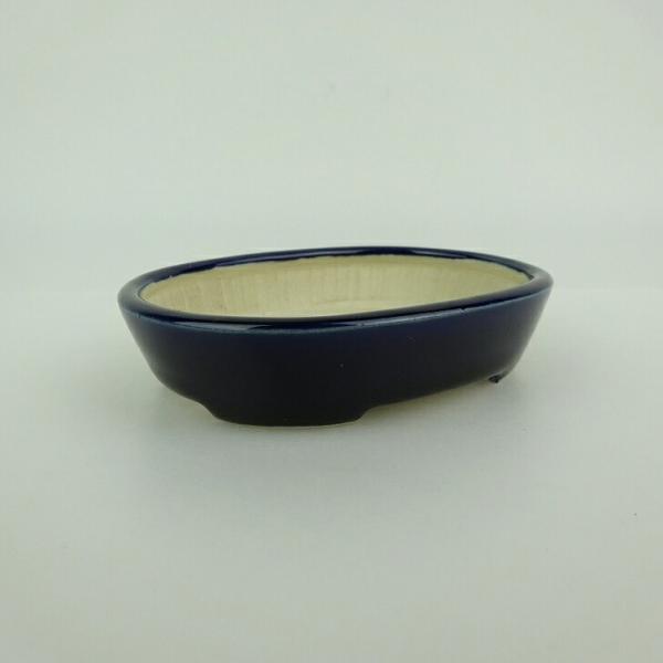 Small bonsai pot, blue, approximately 10cm long, oval, glazed, actual item