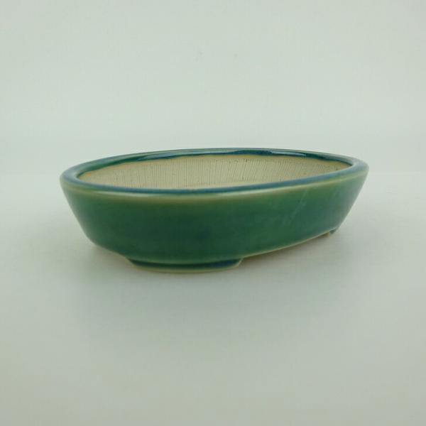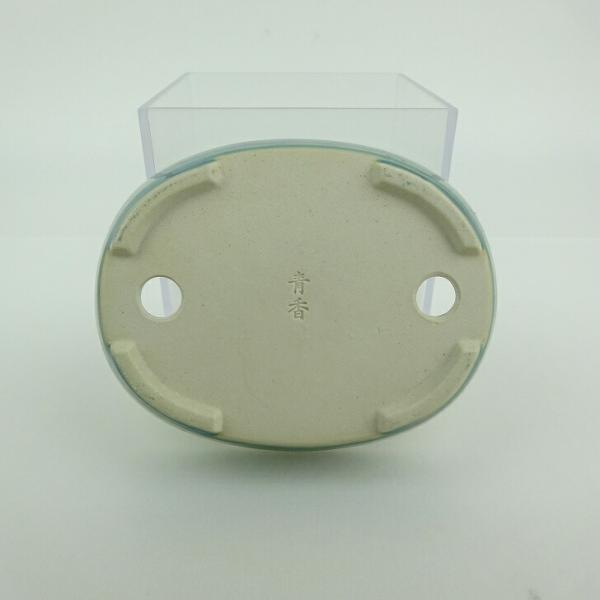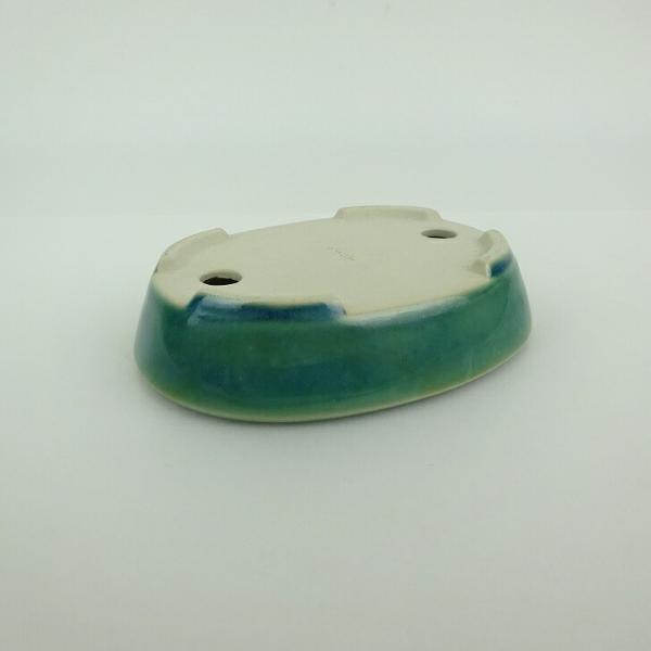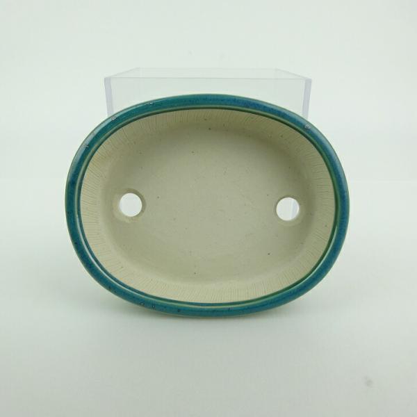 Small bonsai pot, blue, approximately 10cm long, oval, glazed, actual item