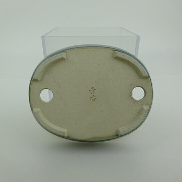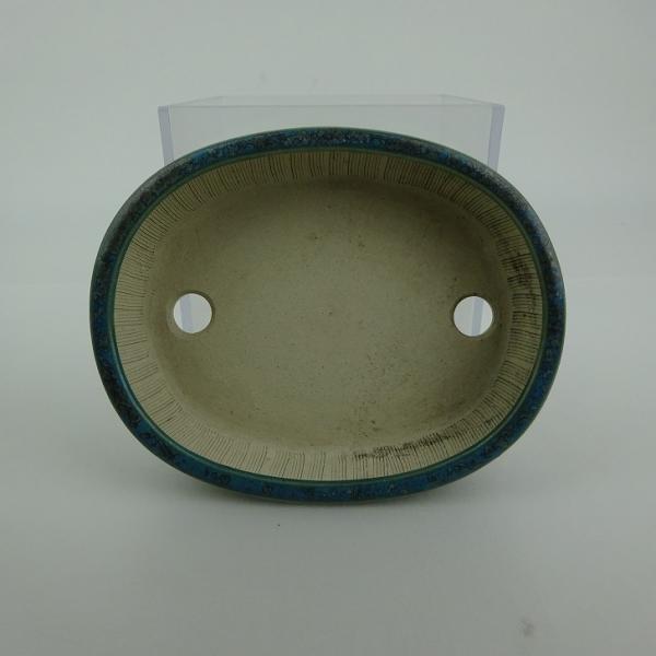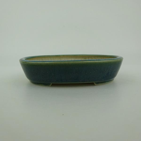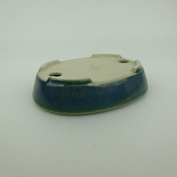 Small bonsai pot, blue, approximately 10cm long, oval, glazed, actual item