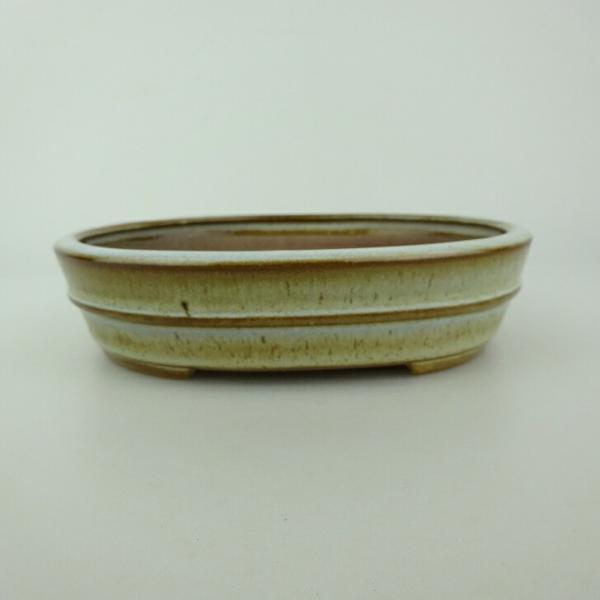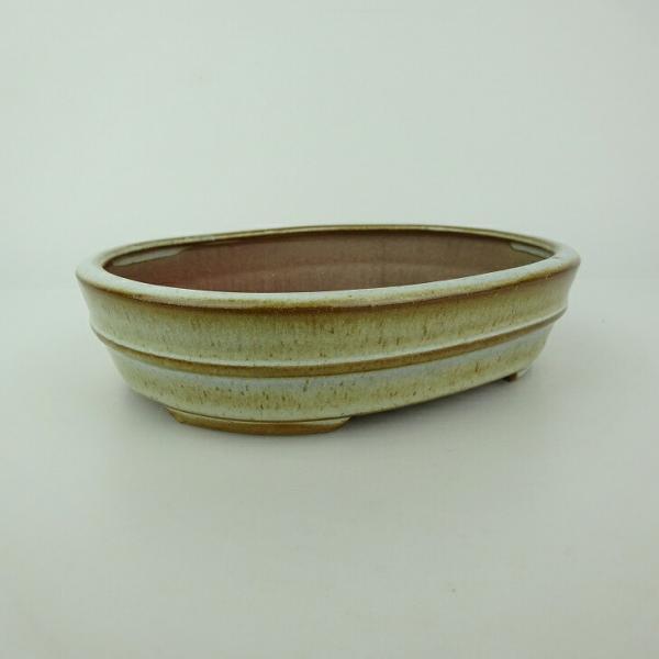Small bonsai pot, Seika, approximately 14.5cm long, oval, medium band, glazed finish, actual item