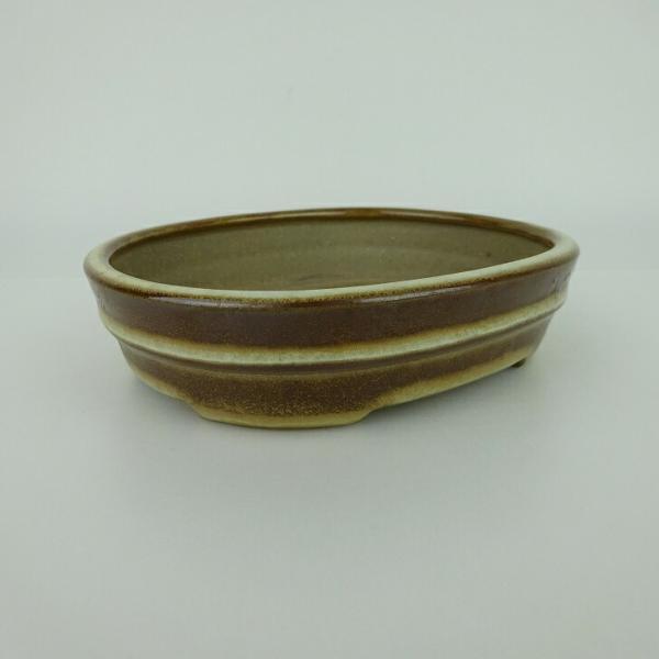 Small bonsai pot, Seika, approximately 14.5cm long, oval, medium band, glazed finish, actual item