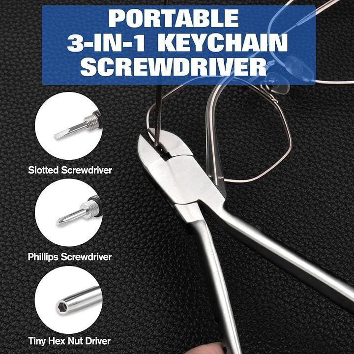 パッケージに含まれるもの:1個の眼鏡修理カッタープライヤー、1個の3-in-1ミニ眼鏡ドライバーで、毎日の眼鏡のメンテナンスに対応