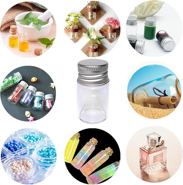 「たくさん入った20個セット」小物の保管や保存に便利なアルミキャップ付きのミニチュアガラスボトルです。