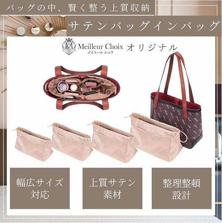 Meilleur Choix のインナーバッグは、S~XLの4サイズ展開で小さめバッグからA4対応バッグまで幅広くフィット。