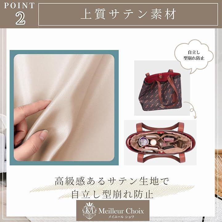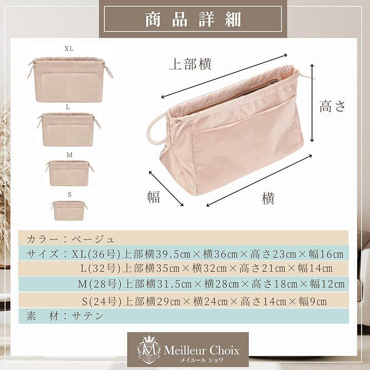 Meilleur Choix のインナーバッグは、S~XLの4サイズ展開で小さめバッグからA4対応バッグまで幅広くフィット。