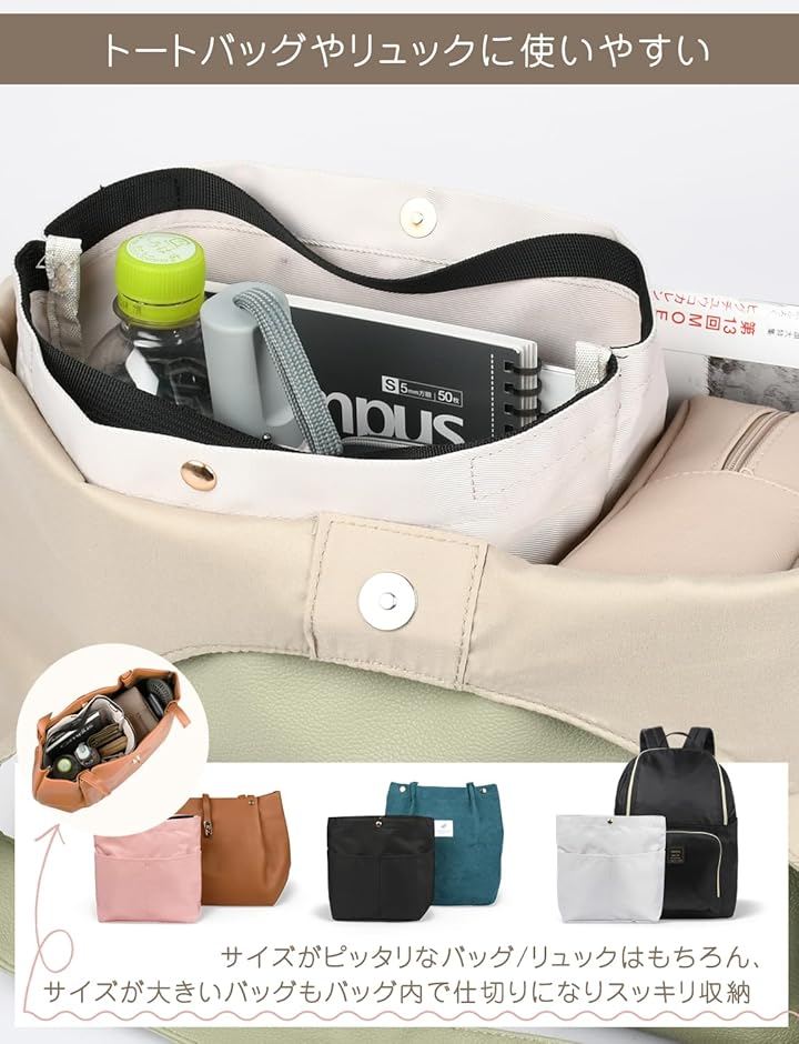 「カバンの中がぐちゃぐちゃ…」「小物が散乱して探しにくい」そんな時にあると便利なバッグインバッグ。