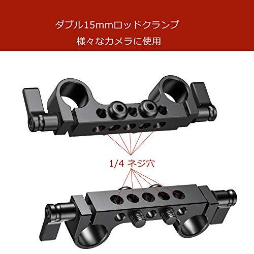 カメラリグ標準の15mmロッドに対応していますので一般的な15mmリグシステムで使用できます。モニターアームやミニ雲台などの撮影アクセサリーが取り付け可能な15mmロッドクランプです。頂部・前面・背面の3箇所に1/4メスネジ穴が3つあり、撮影用途に合わせて様々なアクセサリをマウントすることが可能になります。素早く、スマートに、完璧な写真を撮ることができます。15mmロッドを固定するつまみネジはラチェット式を採用されるので、最適な角度に移動することができます。カメラや各パーツをしっかりと固定する時、つまみが干渉してネジが回せない場合でも、つまみのみ空回りさせネジを締めることが可能です。精度の高い仕上げなので、細部まで使いやすさを追求しつつ、機材の組み替えに大活躍です。プロやアマチュアを問わず、カメラマン/映画製作者のための最適な機材です。