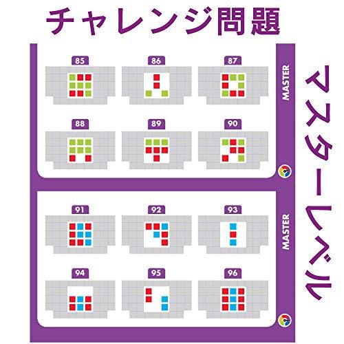真ん中の四角に注目せよ!ゲームボードのセンター部分に注目しながら、全てのピースをはめ込むパズルゲームです。問題に示されているのはセンター部分のみです。カラフルな10個のピースを全て配置し、センター部分が問題とマッチするよう完成させます。初級から上級レベルまでの120のチャレンジ問題に挑戦しましょう。コンパクトで持ち運びに便利! いつでもどこでもチャレンジできます。