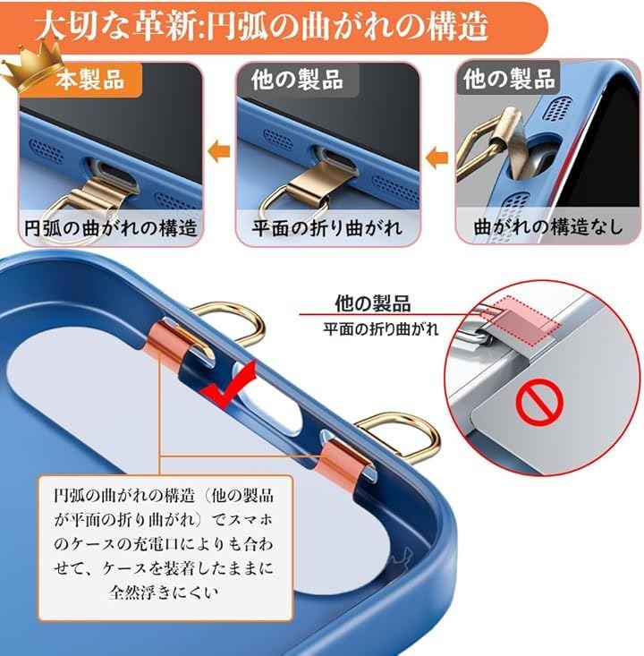 「2口タイプ、充電に干渉ない」: 従来の製品は1つの掛けリングを搭載して、充電口に通して装着するから、充電に干渉しやすいです。