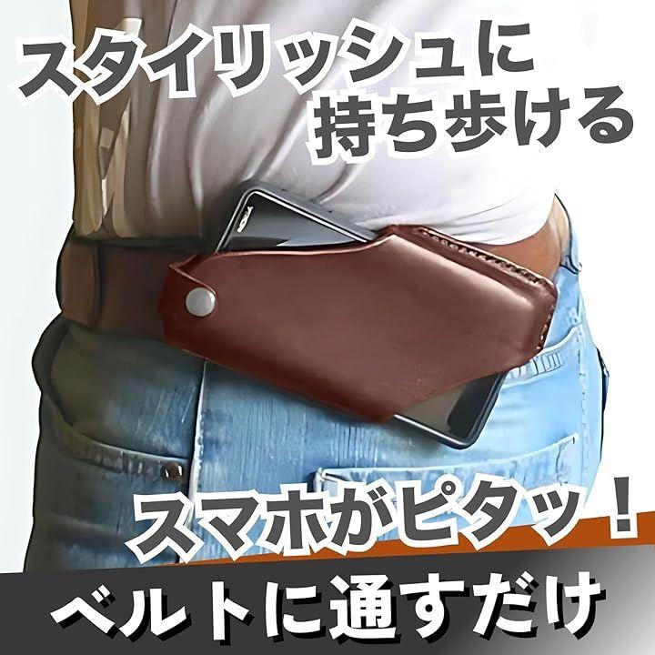ベルトループに通すだけで腰にしっかり固定できるスマホベルトホルダー。