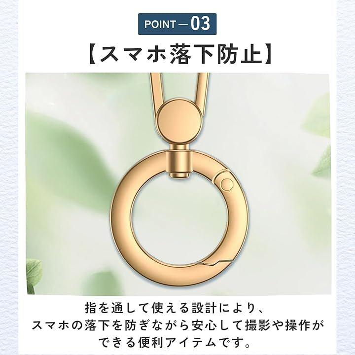 「スマホ落下防止」指を通して使える設計により、スマホの落下を防ぎながら安心して撮影や操作ができる便利アイテムです。
