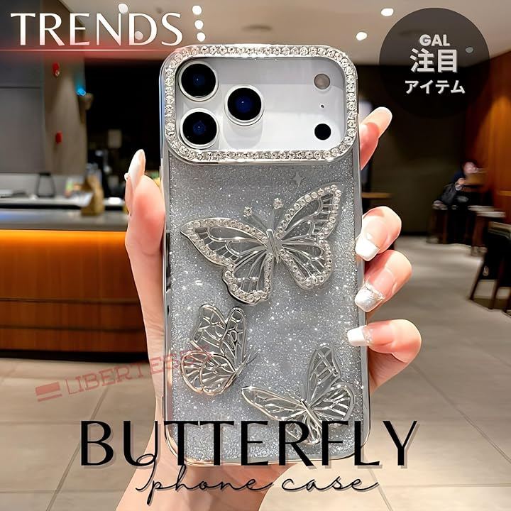 バタフライ柄がゴージャスな可愛いスマホケース。