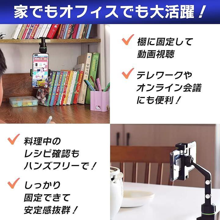 ベッドやテーブル、キッチンにも設置できるため、多機種対応のスマホスタンドとして家庭内でも活躍。