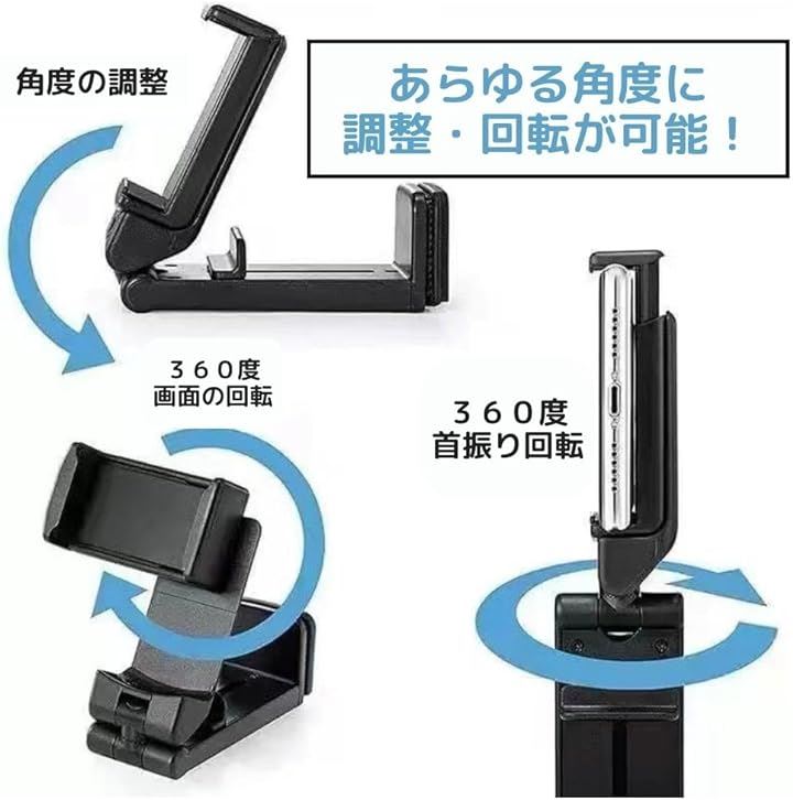 スマホを飛行機や新幹線のテーブルトレイ取り付け、スーツケースなどの荷物のハンドルの取り付け、ベビーチェアやキッチンキャビネットに取り付け、車のヘッドレストのバーに取り付けなどあらゆる物体に取り付けることができます。