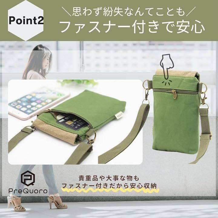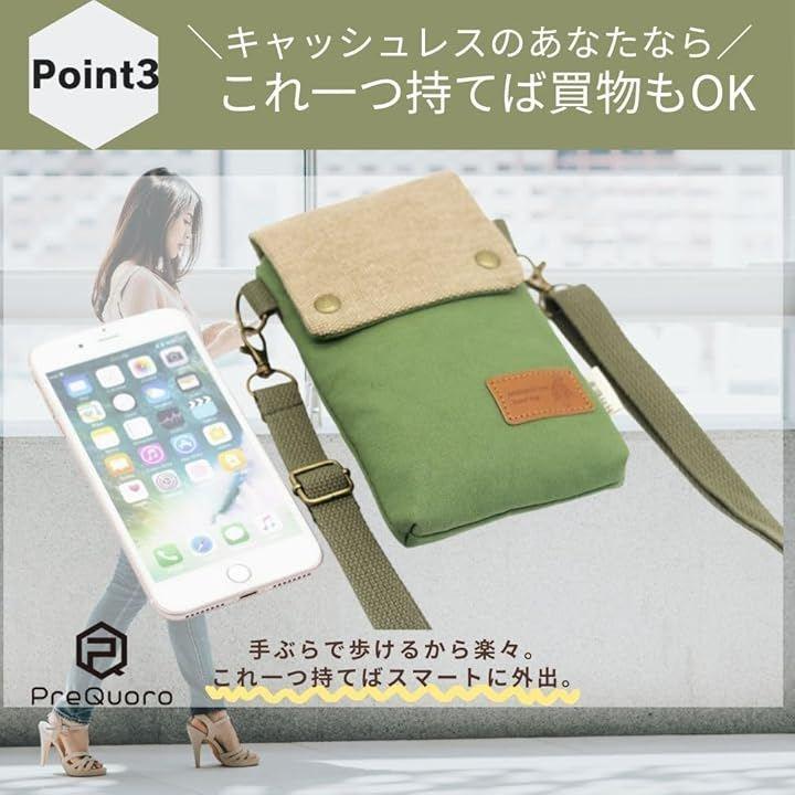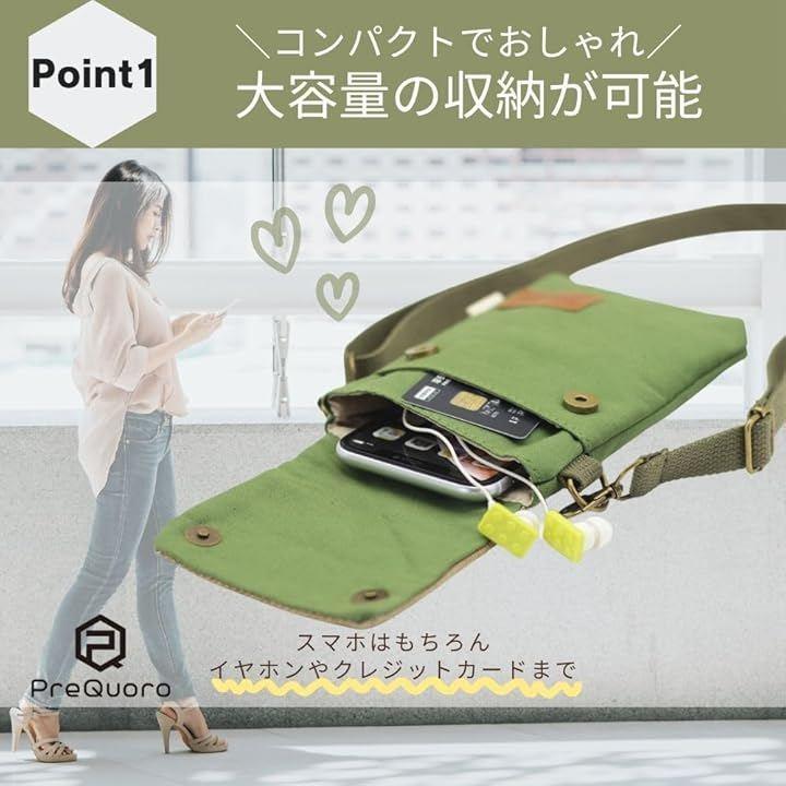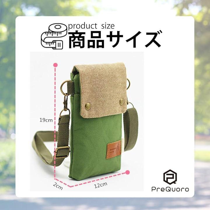 「軽量&コンパクトで持ち運びに便利」PreQuoroスマホポーチは、19x12x2cmのコンパクトサイズで、スマートフォンや小物をすっきり収納可能。
