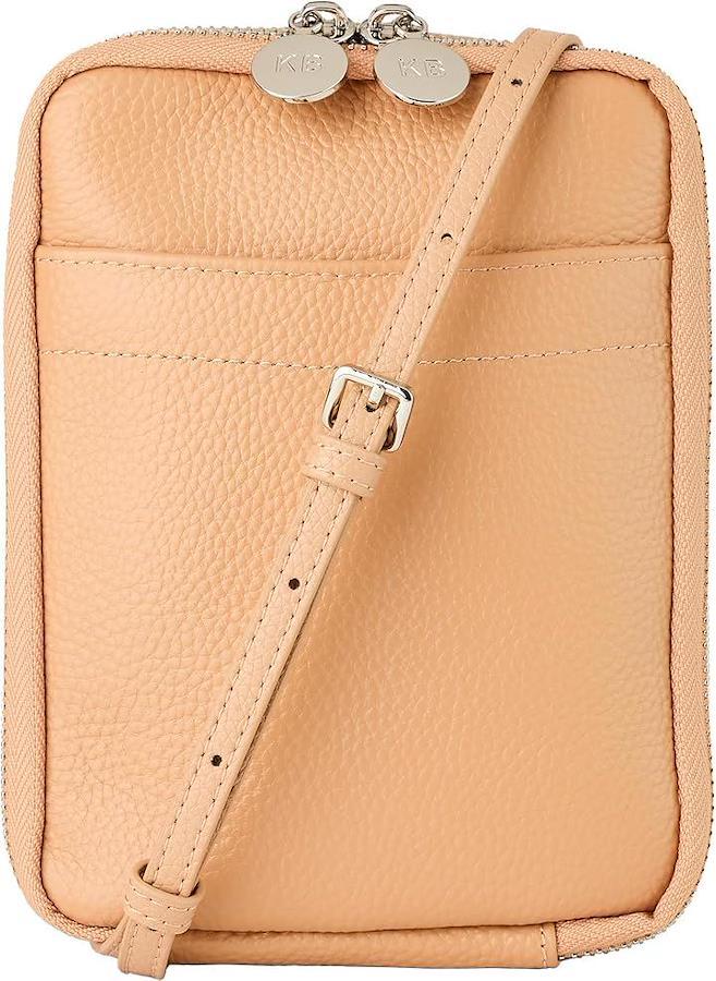 「機能的 スマホショルダーバッグ」 視認性の高い広い開口部を採用し、バッグの中身が一目でわかる設計。