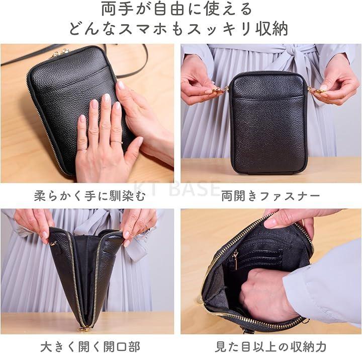「機能的 スマホショルダーバッグ」 視認性の高い広い開口部を採用し、バッグの中身が一目でわかる設計。