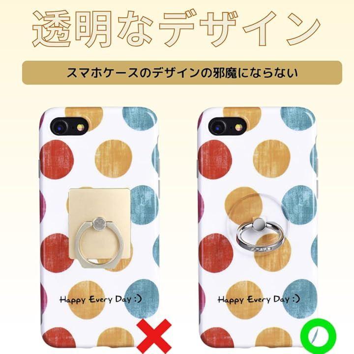 「透明デザイン」 接着面が透明なデザインのスマホリングなのでケースのデザインの邪魔をしません。