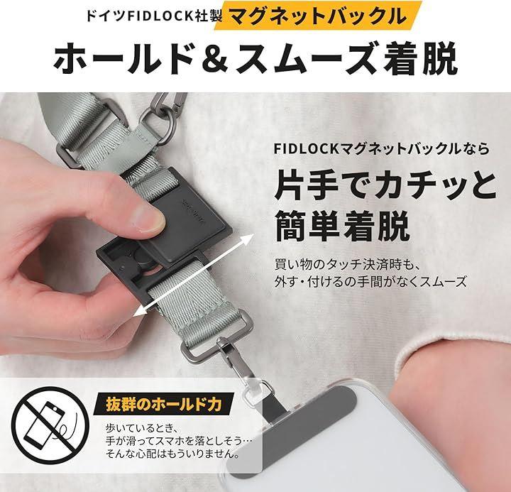 「スマホの取り外し・取り付けがスムーズ」信頼のFIDLOCK社製マグネットバックルを採用し、安全かつ簡単に片手での取り外し・取り付けが可能です。