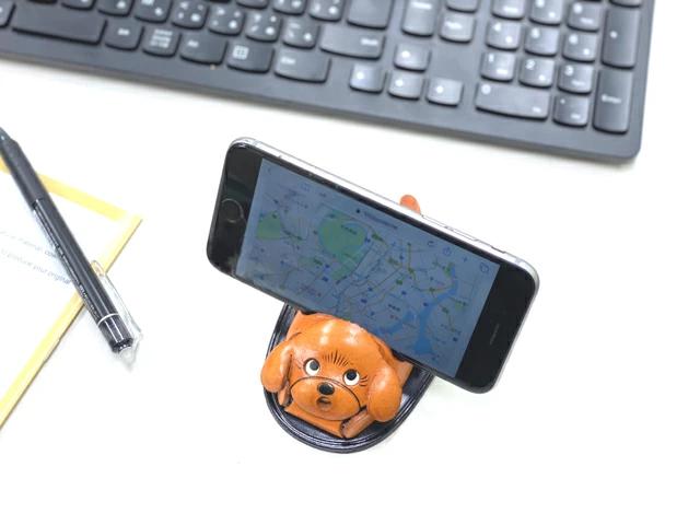 本革を使い、デザイナー自ら一点ずつ丁寧に仕上げた、動物モチーフのスマホスタンド。 在宅ワークやオンライン会議の合間に、革の温かみと愛らしい表情に癒されてください。 土台はおもり入りでどっしり安定。小さめのパッドや本などもはさめます。 書斎の机、リビングの棚、あらゆるシーンにマッチします。 お誕生日、犬好きさんへのプレゼント、在宅ワークのおともにいかがでしょうか?VANCACRAFTの革製品は、『使っていて楽しい小物』を作りたいとの思いから始まりました。全ての商品はバンカクラフトのオリジナルデザインであり、「革物語」は弊社の登録商標です。2000点以上もある商品、全てを国内の自社工房で一点一点手作りしています。