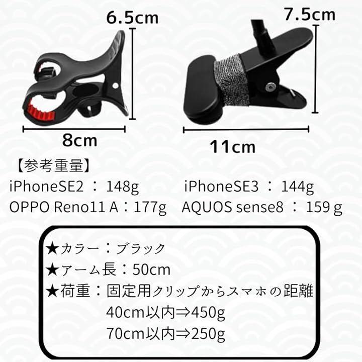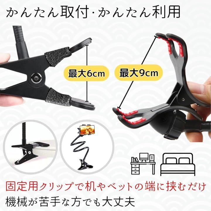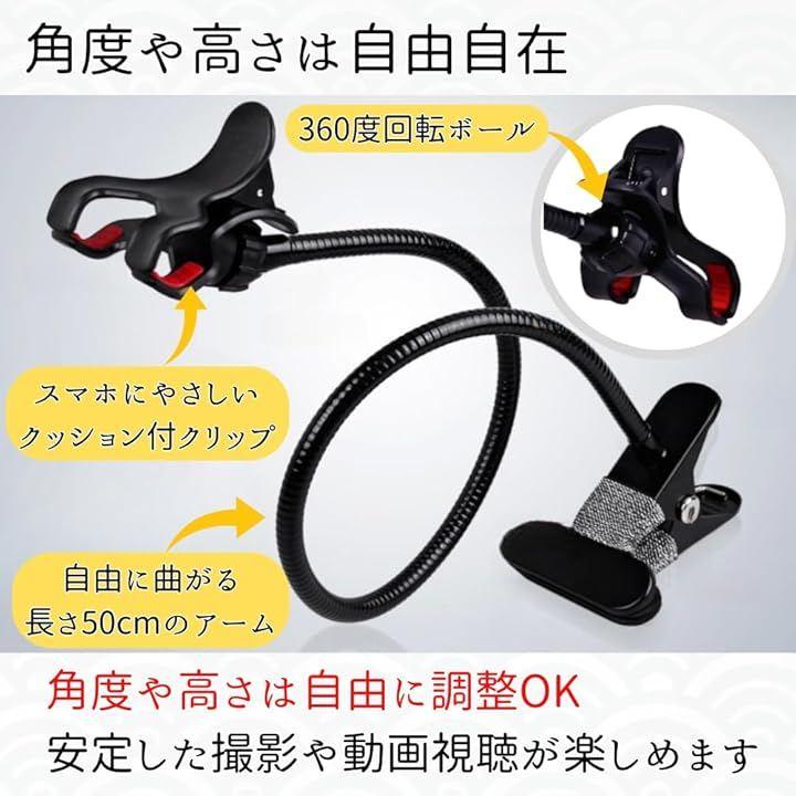 「角度と高さを自由自在に変えられる」フレキシブルアームを採用したスマホスタンド。