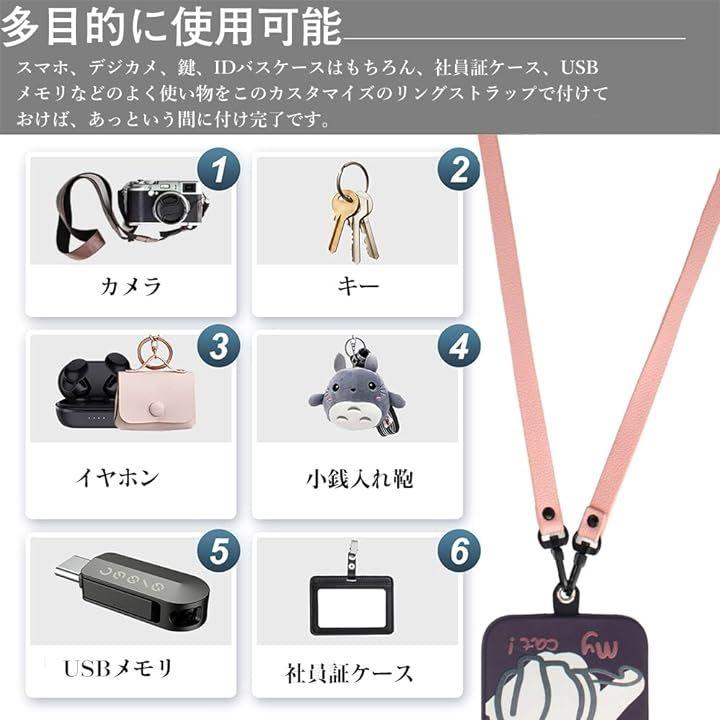 スマホストラップは自由に調節可能、調整の範囲:70-150cm、太すぎず細すぎず、快適で首が痛くならない、自分の身長によって自由調節できます。