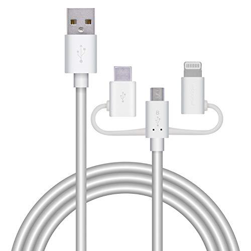 スマートフォン用USBケーブル 3in1 microUSB+Type-C+Lightning 1.2m ホワイト MPA-AMBLCAD12WH