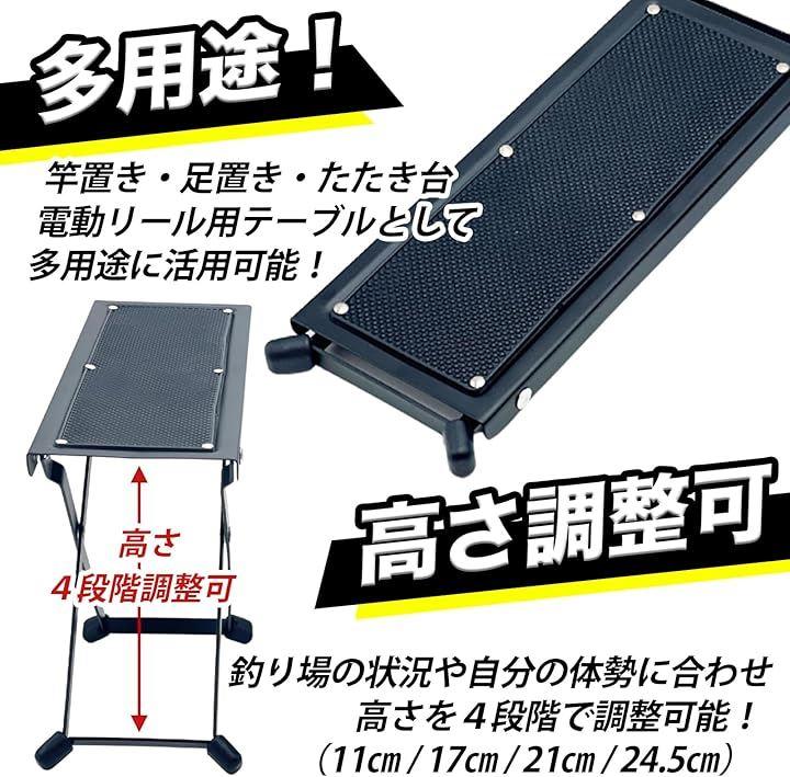 この釣り用スタンドは、竿置き、足置き、たたき台、電動リール用テーブルとして多用途に活用可能です。